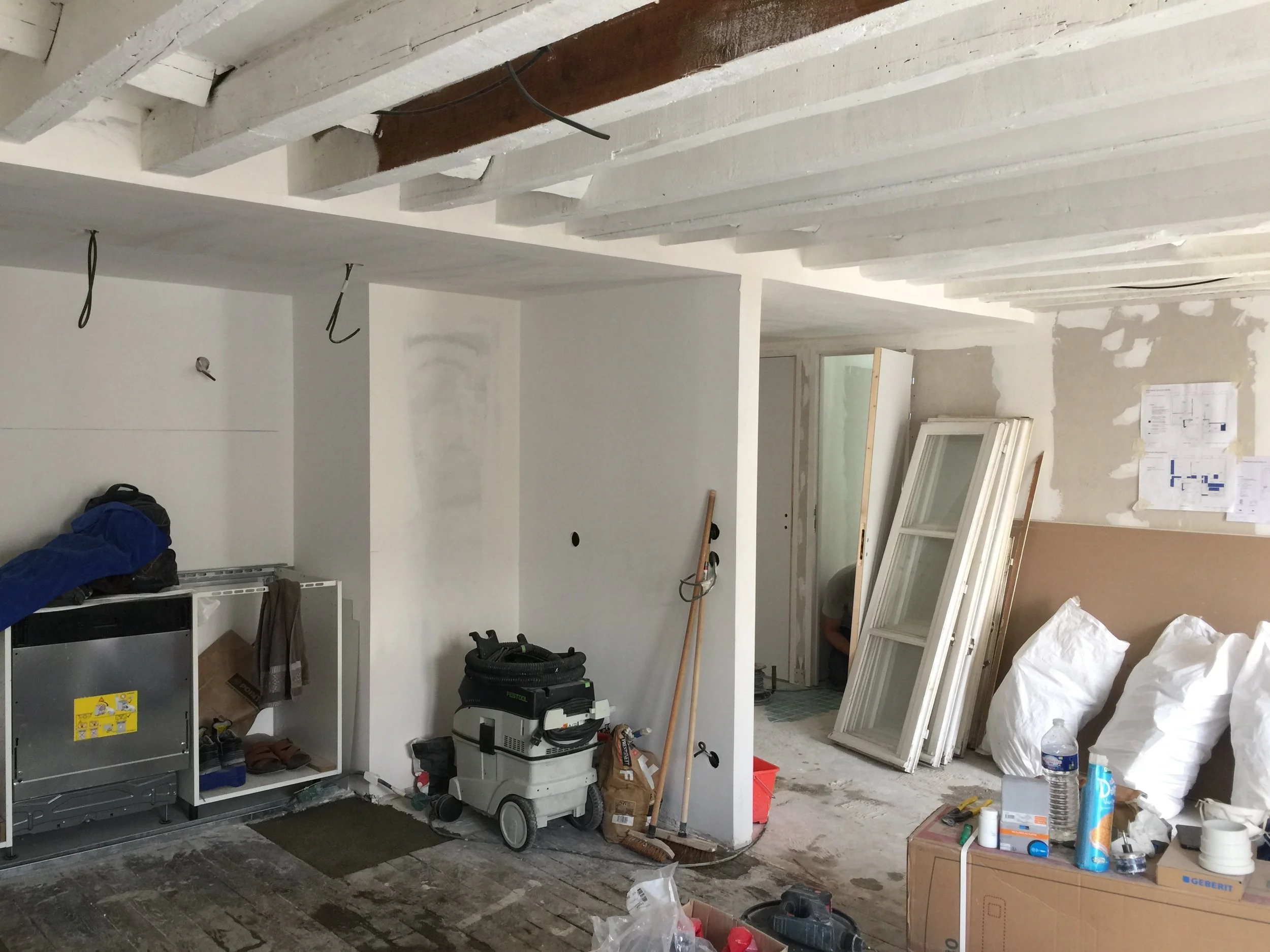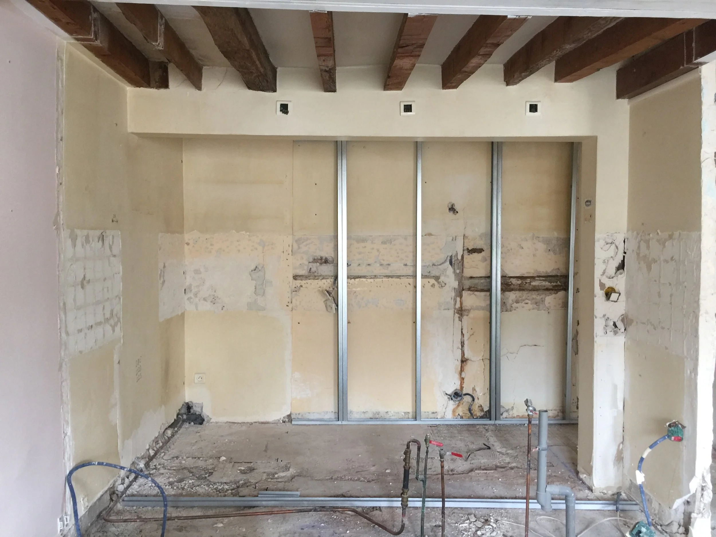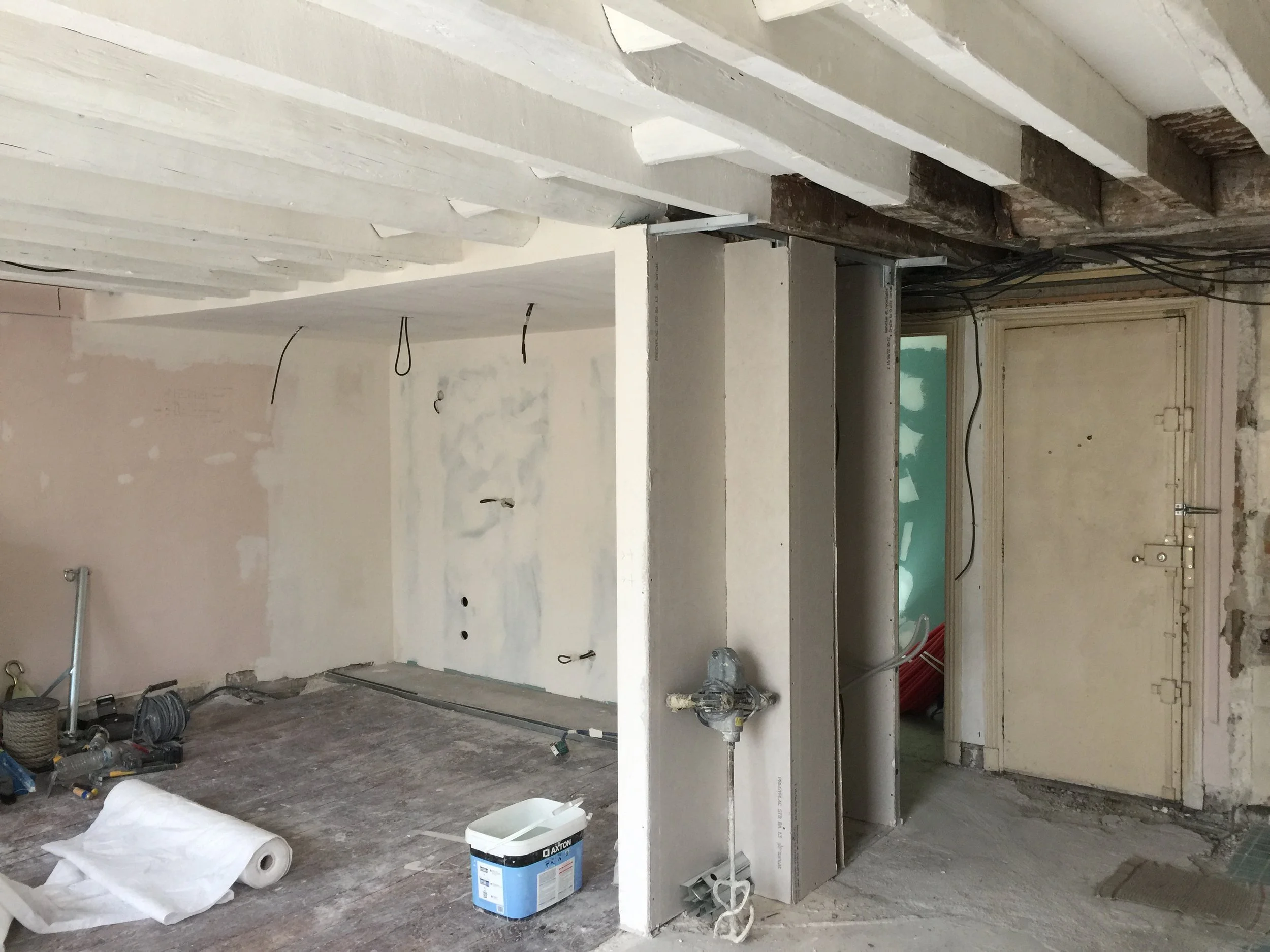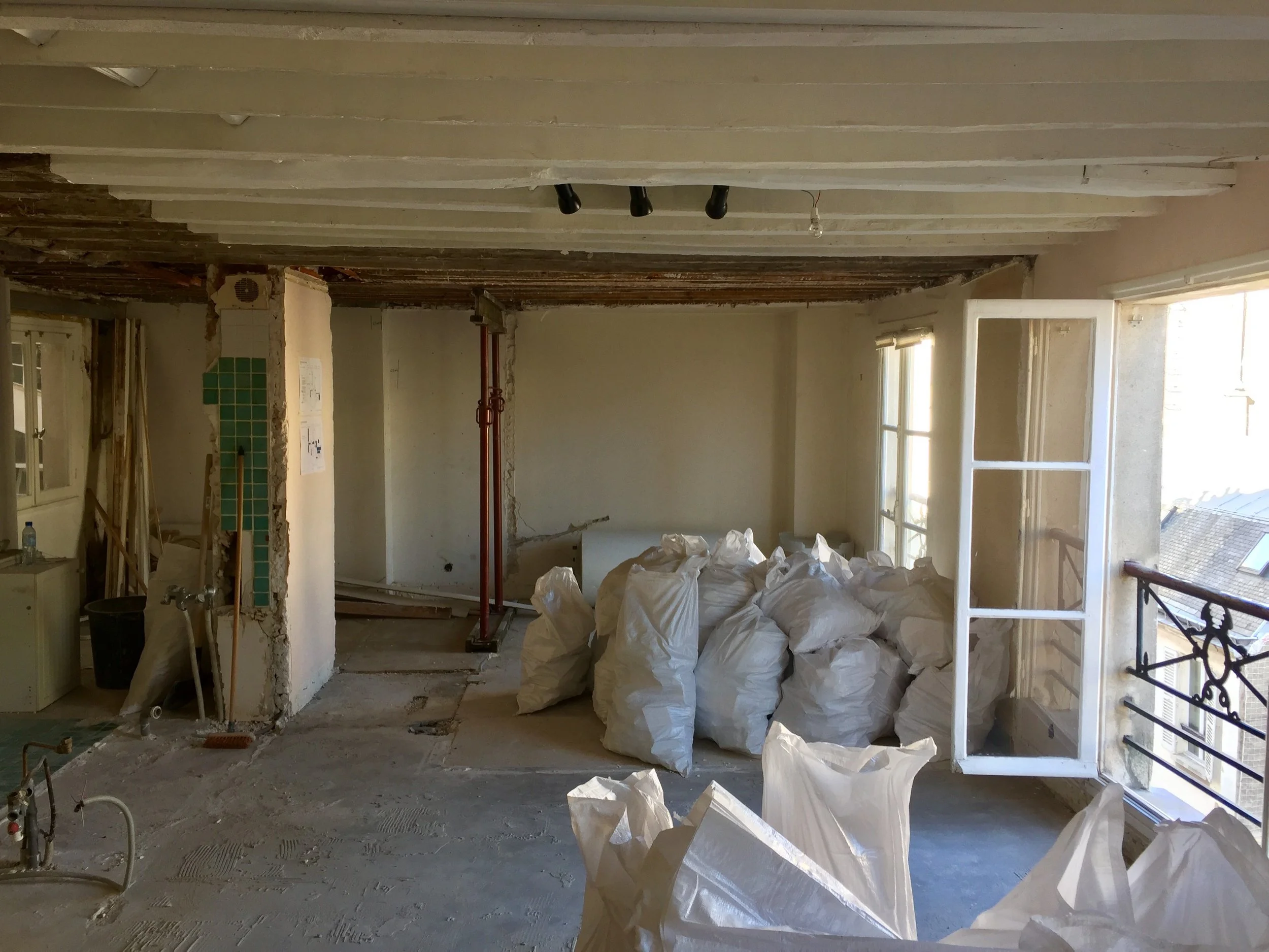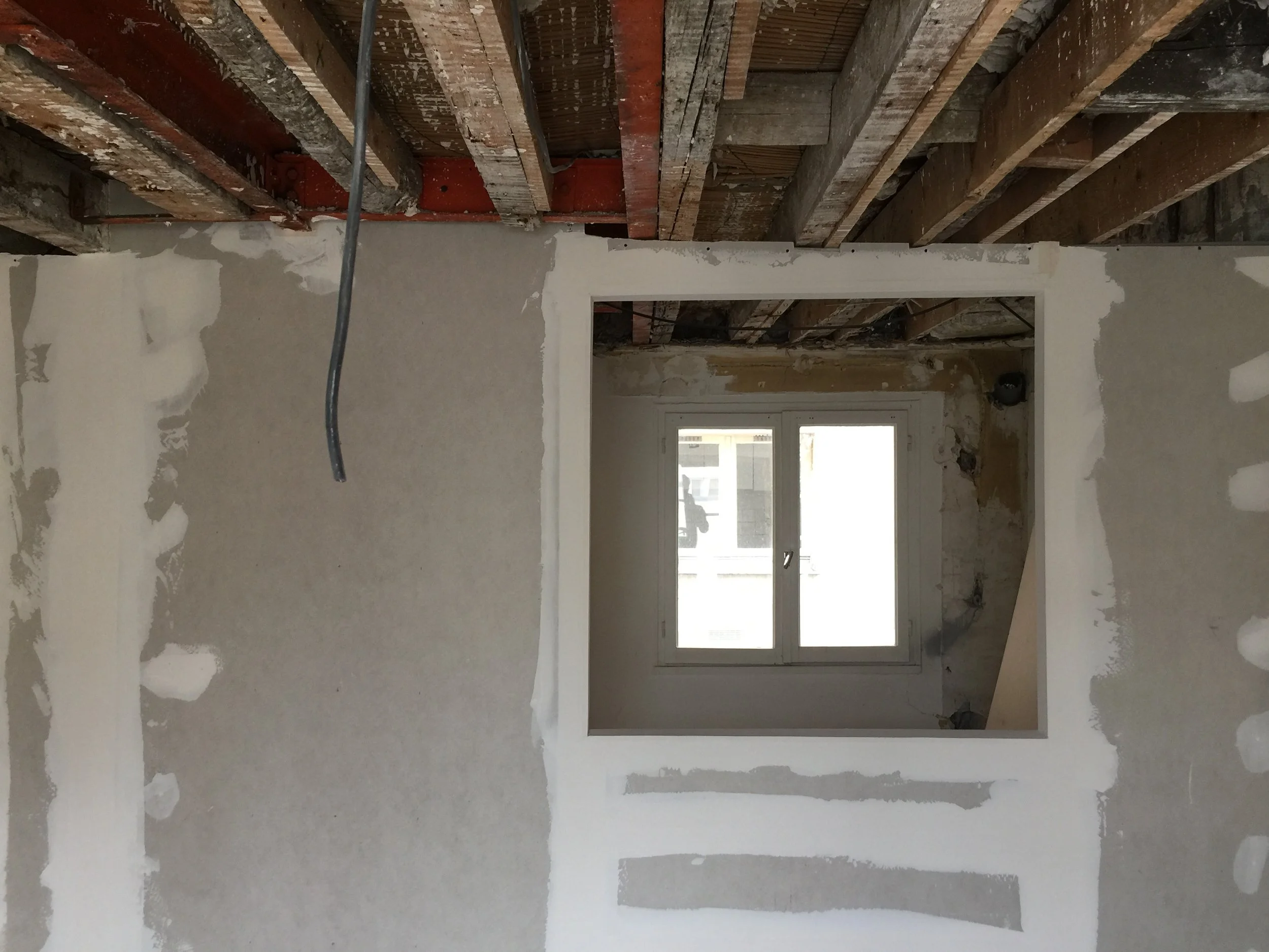 L’appartement se situe dans un immeuble du 19e siècle, en étage élevé, il s’ouvre sur une cour claire et dégagée. Le cloisonnement existant est la résultante d’une succession de modifications antérieures, la répartition des pièces est assez déséquilibrée et les parcours sont compliqués.